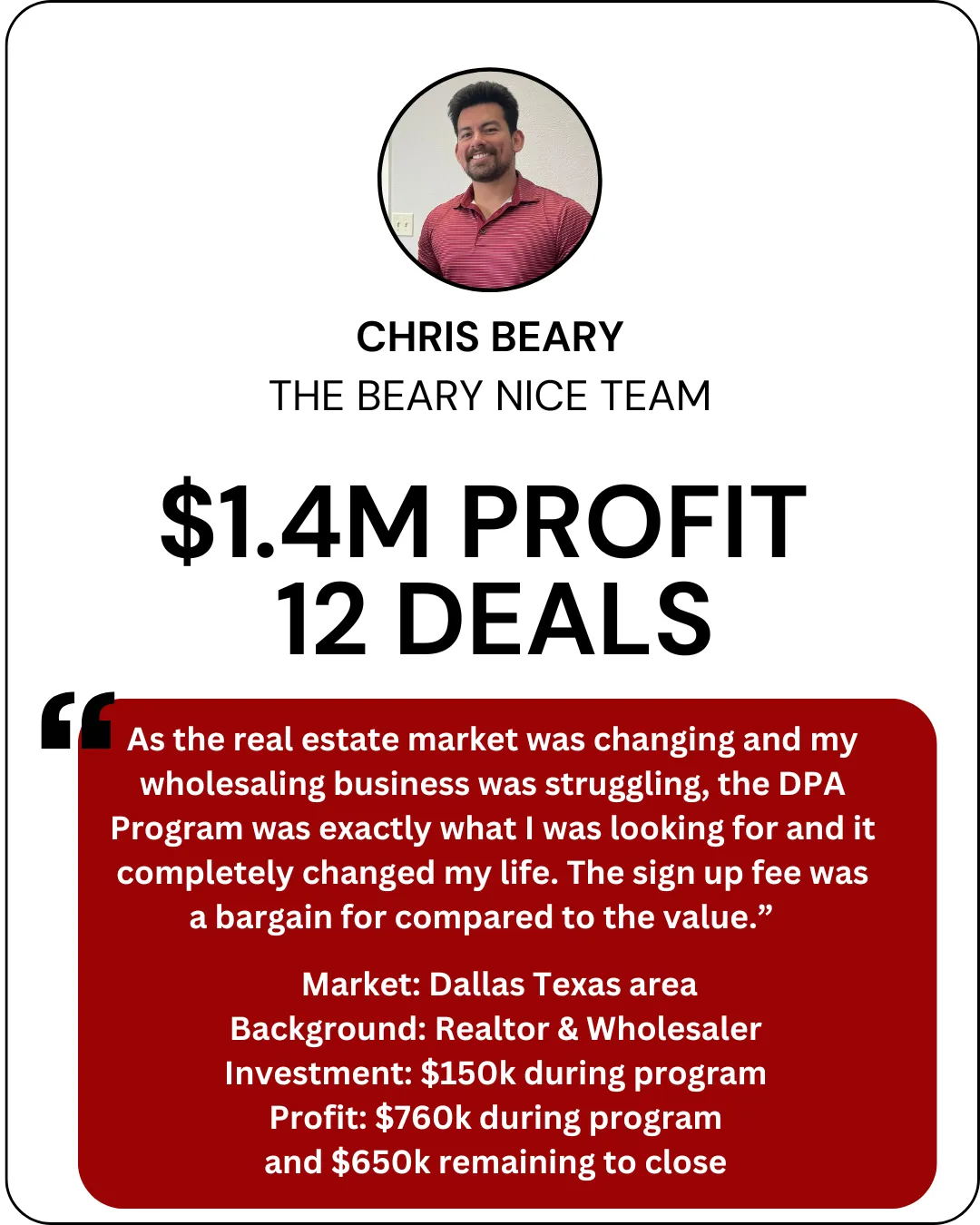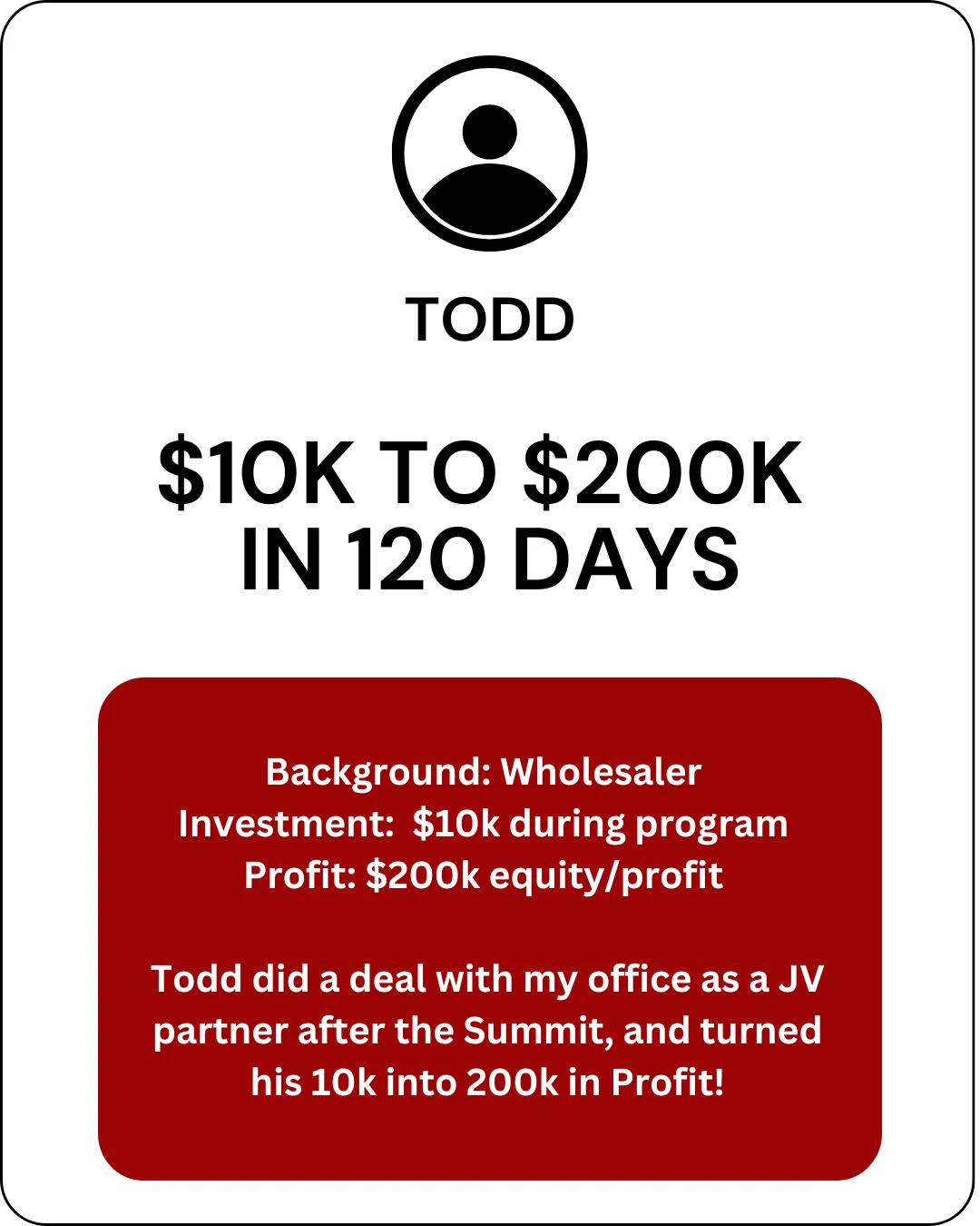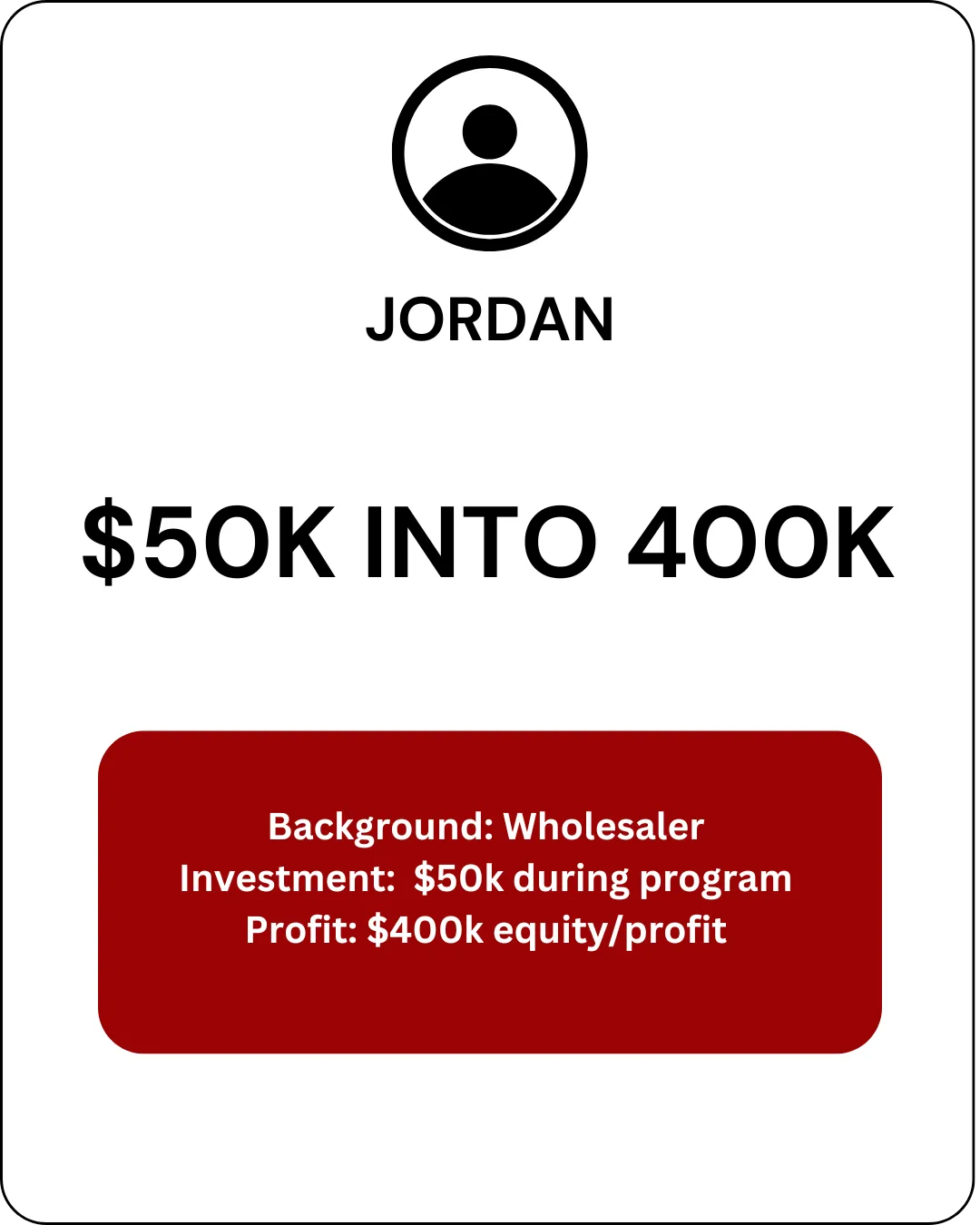 "Everything changed for me when I went to one of his events last year and learned about this model. Now we're making 100 grand per deal minimum."